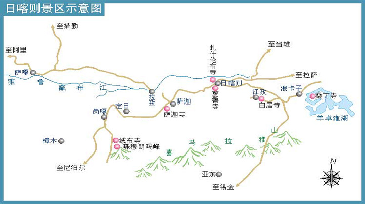 日喀則、珠峰、絨布寺、定日、 江孜、羊湖。