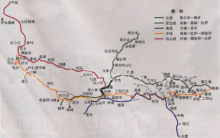 拉薩、布達拉宮、大昭寺、納木錯、那根拉雪山、羊八井、巴拉雪山、羊卓雍湖、卡若拉冰川、江孜、日喀則、扎什倫布寺、定日、絨布寺、珠峰大本營、薩嘎、仲巴、帕羊、神山崗仁波齊、扎達、古格、獅泉河、多瑪、紅柳灘、葉城、英吉沙、喀什、香妃墓、艾提尕爾清真寺、老城區(qū)、烏魯木齊。