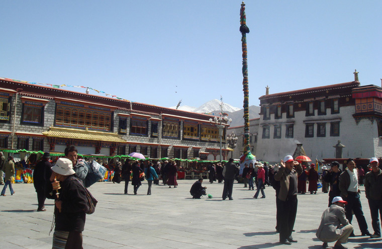 藏族人也喜歡將以大昭寺為主的八角街一帶稱為“拉薩”,藏文意思是佛地,你還可以看到虔誠(chéng)的朝拜者在大昭寺門口磕長(zhǎng)頭,場(chǎng)面非常感人,由此可見大昭寺在西藏人民心目中的地位之高。