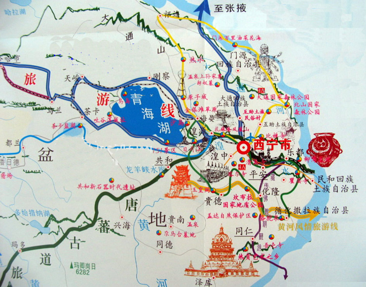 沿牧區(qū)道路行駛,不久抵達夏河縣沿大夏河行駛,參觀有“衛(wèi)藏第二大寺”,黃教六大寺院之一,安多第一古剎拉不楞寺和寺中貢唐寶塔后,繼續(xù)行使到達臨夏鎮(zhèn)午餐,餐后進入202國道,翻越達里加山口,穿過峽谷進入循化,沿途欣賞黃土高山的雅丹地貌,一路上風(fēng)光盛美,綠蔭和黃土高坡、青稞田、清真寺交相輝映,后在平安駛上高速公路,約1小時侯抵達青海省省會,素有青藏門戶的-西寧。